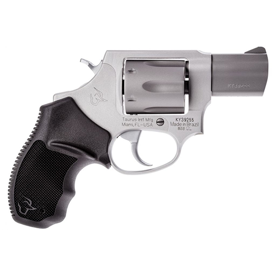The Taurus 856 is a reliable 6-shot 38 Special revolver that features soft rubber gripsmaking it comfortable to shoot at the range while the double/single action increases speed and accuracy for follow-up shots. The 856 is offered in either a Matte Blue or Matte Stainless finish. Known for its easily managed recoil impulse the .38 Special round of the 856 can accommodate ammunition ranging from light target loads to self-defense rounds. The DA/SA action and 2-inch barrel on the 856 optimizes on-body or off-body carry and home defense usage. – Finish: Matte Stainless Steel – Caliber: 38 Special – Grips: Soft Rubber – Capacity: 6 – Weight: 22 oz – Barrel Length: 2 – Height: 4.8 – Width: 1.41 – Action: DA/SA – Front Sight: Serrated Ramp – Length: 6.55 – Safety: Transfer Bar – Rear Sight: Fixed
