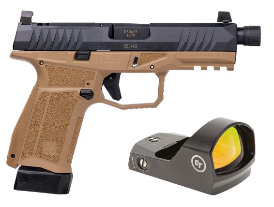 AREX DELTA M TACTICAL 9MM 1X15RD 1X17RD SUPPRESSOR HEIGHT SIGHTS 5X OPTICS PLATES FDE WITH CRIMSON TRACE RED DOT