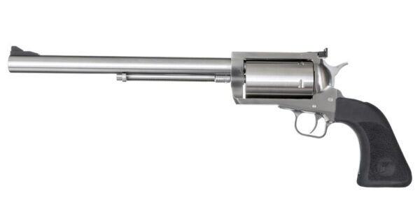 Manufacturer: Magnum Research Model: BFR SKU: BFR460SW10 Caliber: .460 S&W Magnum Barrel: 10″ Twist Rate: 16 Groove Diameter: 0.451 OA Length: 17.5″ Weight: 4.7lbs Height: 6″ Width:1.75″ Trigger Pull: 3~4 lbs Finish: Brushed Stainless Steel Construction Sights: Factory Black Fixed Front / Rear Adjustable Capacity: 5