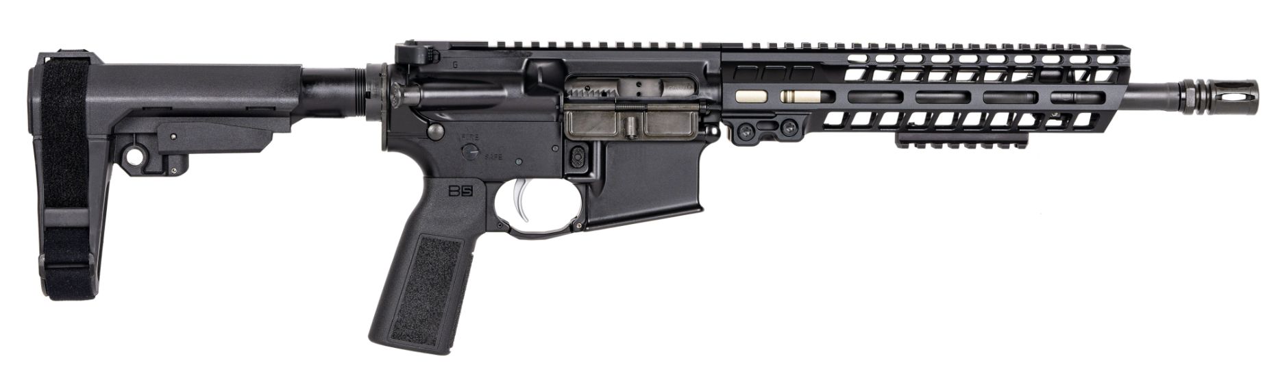 Geissele Automatics, MFG# 08-493B, UPC: 810081132473, UOM: EA, Border Patrol Pistol, 5.56x45mm NATO, 11.5″ Barrel, M-LOK, A2 FH, SB Tactical SBA3, Black, (Mag not included), GEIS, GEISHG10, GEISHGALL, HG10, HGALL