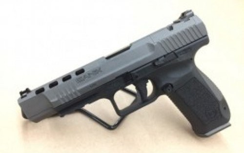 Century Canik TP9SFx Pistol Action …………: SA Caliber ………..: 9 MM Barrel Length .: 5.2″ Finish ………….: Black Sights …………: Warren Tactical sights with green fiber optic front sight Weight ………..: 1.87 lbs Overall Length: 8.27″ Capacity ………: 10 +1 Features: Removable red dot cover, Match grade barrel, Reversible ambidextrous cocking lever, Striker status indicator, AFC magazine coating, Extended ergonomic slide release, Two extra sizes of magazine catch extension, Two mags, Poly holster, Paddle and belt attachment, Interchangeable backstraps, Cleaning rod, Brush, Limited lifetime manufacturer’s warranty MA Compliant