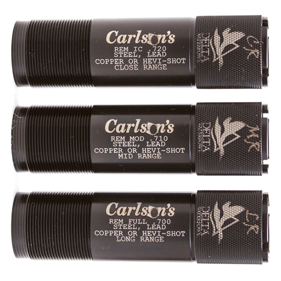 CLOSE-RANGE MID-RANGE & LONG RANGE CHOKE TUBES WITH CASE – Our Waterfowl Extended Choke Tubes are manufactured from 1704 stainless steel and designed to throw tighter and denser patterns than conventional choke tubes. These choke tubes feature a 25% longer parallel section in the choke thus throwing more consistent patterns. Each choke tube is knurled on the end to allow for quick and easy removal. Each choke tube has the constriction and size laser marked on the end and body for easy reference. – Steel shot may be used through these choke tubes with exceptional results. Do not shoot steel shot larger than BB or any steel load faster than 1550 FPS through the Full or Extra Full Constrictions. – Slugs sabots and rifled slugs are not to be used in any choke constriction tighter than Improved Cylinder. Remember to pattern your shotgun choke tube with the specific shotshell load you are going to be using. Different brands of ammunition throw different patterns from the same choke tube.