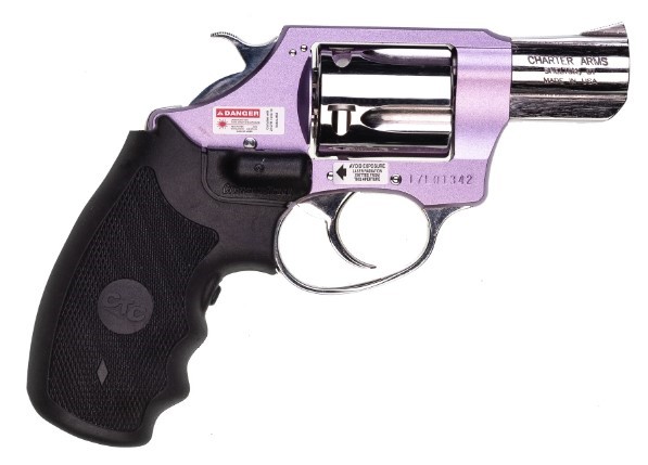 Caliber : .38 SPECIAL Cylinder: POLISHED STAINLESS Action : DA REVOLVER Frame : 7075 ALUMINUM Magazine Capacity : 5-SHOT Finish : LAVENDAR/STAINLESS Barrel Length : 2″ Grips : CRIMSON TRACE LASER Overall Length : Model # :53842 CHARTER ARMS CHIC LADY Weight : 12 OZ * LOCKABLE JEWEL CASE Sights : FIXED * SPURRED HAMMER *