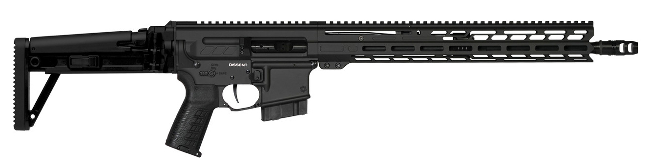 Designed for those residing in states with straight-wall cartridge requirements during hunting seasons 350 Legend’s claim to fame is that it offers greater energy than rounds like 30-30 and substantially less recoil than other popular straight-wall cartridges like 450 Bushmaster. This 350 Legend DISSENT® is perfect for those looking for a compact and stowable rifle that’s ready to go where you do. – Available in a variety of custom Cerakote finish options; the rear of every DISSENT rifle features the DISSENT side folding stock with adjustable length of pull and adjustable cheek riser. A forward non-reciprocating charging handle allows for quick and easy manipulation without coming off target and the M-LOK handguard with top picatinny rail provides ample mounting space for whatever accessories you please. – Platform: Mk4 – Caliber: .350 Legend – Operating System: Compact Action-Direct Impingement – Barrel Length: 16.1 – Barrel Twist: 1:16 – Barrel Contour: MT – Barrel Material: 416SS SBN – Barrel Twist: 1:16 – Muzzle Device: CMMG ZEROED Muzzle Brake – Muzzle Thread: 1/2 x 28 – Gas Port Location: Carbine – Gas Block: Adjustable 0.750 – Upper Receiver: DISSENT 7075 T6 Aluminum – Lower Receiver: Mk4 Forged 7075 T6 Aluminum – Hand Guard: CMMG 15 Proprietary – Finish: Cerakote – Charging Handle: Dissent Side Charger – Reversible – Pistol Grip: CMMG ZEROED Pistol Grip – Buffer Type: N/A – Receiver Extension: DISSENT Folding Stock Adapter – Stock / Brace: DISSENT Side Folding Stock – Trigger Type: ZEROED Drop-In – Trigger Guard: CMMG ZEROED Trigger Guard – Safety Selector: CMMG ZEROED 60/90 Degree – Magazine: CMMG 10rd (2) – Weight: 6.5 lbs – Length: 33.3-35.5 (25.9 Folded)