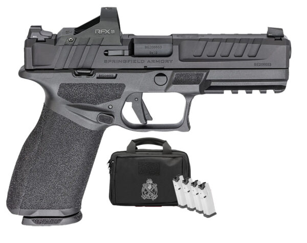 Springfield Armory, MFG# EC9459B-3D-15-GU25, UPC: 706397996079, UOM: EA, Echelon, 9mm, 4.5″ Barrel, Viridian Green Dot, 3-Dot Trituim, Range Bag, Black, (5) 15-rd, GEAR UP, SPRI, SPRIHG10, SPRIHGALL, HG10, HGALL