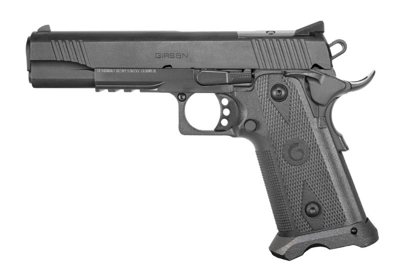 Brand: European American Armory Model: Witness 2311 Model Number: 395040 Caliber: 45 ACP Type: Pistol Action: Semi-Automatic Barrel Length: 5” Finish: Black Capacity: 11 Features: Girsan Witness 2311 5″ Government, Optic Ready Black with Fixed Sights and Far-Dot Optic