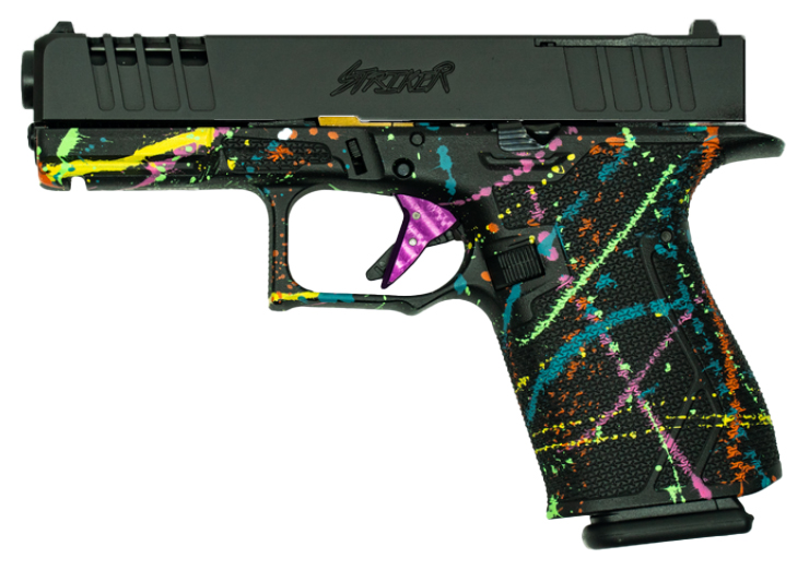 GLFA 19 STRIKER 9mm Compact Polymer Framed Striker-Fired Pistol Optic Ready RMR Compatible Ported Slide W/ Front & Rear Slide Serrations Compatible With Gen3 Parts Ambi-Magazine Release Cerakoted Splatter Black Frame 4 Barrel 1-15rd Glock Compatible Magazine – The all new GLFA Striker is here! More bang for your buck on this handgun aluminum flat face trigger slide cuts and RMR optic ready. – GL19 Striker Features: – Action: Semi-automatic – Ambidextrous Mag Release: yes – Barrel: 4 Nitride – Caliber: 9MM – Finish: Ceratkote and Nitride – Frame: Polymer – Magazine Capacity: 15 – Mags Included: 2 – Sights: Fixed – Sight Plate: RMR optic cut ready – Trigger: Aluminum flat faced