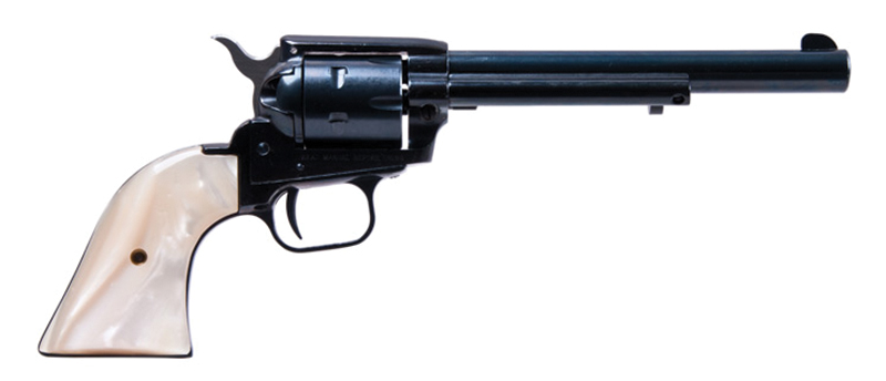 Heritage, MFG# RR22MB6PRL, UPC: 727962500361, UOM: EA, Rough Rider, 22 Combo, 6.5″ Barrel, Fixed Sights, Blue, White Pearl Grip, 6-rd, HERI, HERIHG20, HERIHGALL, HG20, HGALL, Case: 5