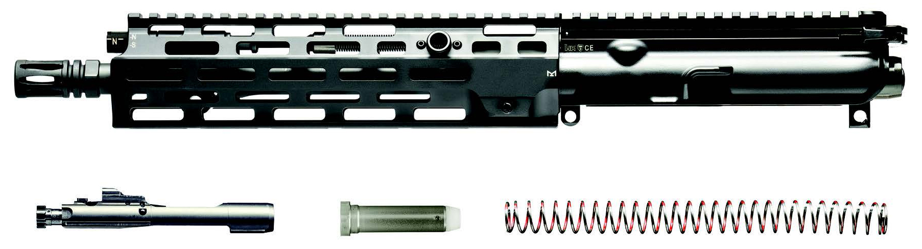 The MR556 upper receiver kit has been updated to include all the new A4 features including new barrel profile adjustable gas block handguard and more. – This kit includes a complete upper receiver/barrel assembly allowing Mil-Spec 5.56mm AR-style rifles to be retrofitted to HK’s piston and pusher rod system. This system utilizes a piston and a pusher rod in place of the gas tube normally found in AR15/M16/M4-style rifles. This closed system virtually eliminates the malfunctions that are common in direct-impingement gas systems since hot carbon fouling and waste gasses are not propelled into the receiver area to operate the action. This is the same key feature critical to the success of the HK416 used by elite military and law enforcement customers. – The MR556 A4 is assembled in the USA using US and German-made components and uses many of the same parts and assemblies originally developed for the HK416. It functions reliably and shoots accurately with a wide variety of quality 5.56mm or .223 ammunition. – The MR556 A4 Upper kit includes – 1. Complete MR556 upper receiver/barrel assembly barrel upper receiver with forward assist extended charging handle and free-floating slimline handguard. – 2. Complete MR556 bolt group assembly – 3. HK proprietary buffer and action spring – Due to the shortened length of the HK buffer and action spring these parts do not work in fixed-stock AR/M16 type rifles. Installation of Mil-Spec hammers on non-HK lower receivers is required for reliable function.