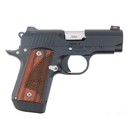 ^Micro 9 Black/Rosewood RTC 9mm Bundle 3.15″ 7rd Black Slide/Frame; Rosewood Grips; Fiber Optic Front Sight; White 2-Dot Rear Sight; 2x7rd Mags, Desantis Pro Holster
