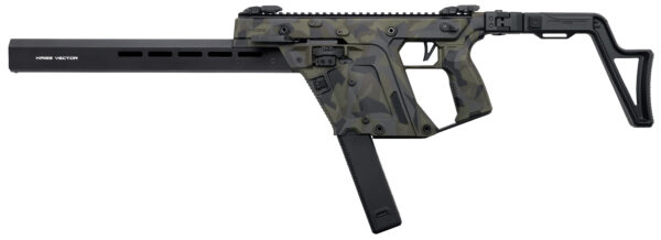 Tailored for recreational use and competition in pistol caliber carbine divisions the KRISS Vector Gen 3 CRB is the most accessible model with a 16 rifle length barrel and is compliant in most states. The upper and lower housings have been reimagined and enhanced for adaptability. The CRB comes equipped with a refreshed barrel shroud with M-LOK® mounting points. – The CRB is fed with full size Glock® magazines ensuring seamless interchangeability for users familiar with Glock-style mags. – New Features – REDESIGNED HOUSINGS – INTERCHANGEABLE PISTOL GRIP SYSTEM – AMBIDEXTROUS ADJUSTABLE FOLDING STOCK – M-LOK BARREL SHROUD – AMBI MAG RELEASE & REDESIGNED CONTROLS – Other Features – Skeletonized Trigger with 0.7mm Pre-Travel – Ambidextrous Short Throw Safety Lever – Gen 3 Bolt Release and Mounting Block – Full Length MIL-STD 1913 Picatinny Top Rail – Short Charging Handle / Brass Check Function – 4-Pin Tool-Less Disassembly – Caliber 45ACP – Model Vector CRB – Action Semi-Automatic – Operating System Closed Bolt Delayed Blowback – Barrel Length 16.0 In – Overall Length Collapsed 34.9 in / 887.5 mm – Overall Length Extended 36.9 in / 937.5 mm – Magazine(s) included (1) 30 Rounds – Color Woodland Delta CERAKOTE® Coating – Weight 7.7 lbs / 3.5 kg – Barrel Material 4140 Chrome Moly – Barrel Finish Black Nitride (QPQ) – Barrel Threading .578×28 RH – Trigger Type Pivoting Single Stage – Stock KRISS Ambidextrous Telescopic Folding Stock – What’s in the Box – (1) KRISS Vector Firearm – (1) Magazine – (1) Cleaning Kit – (1) Cable Lock – (1) User Manual – (1) Warranty Card
