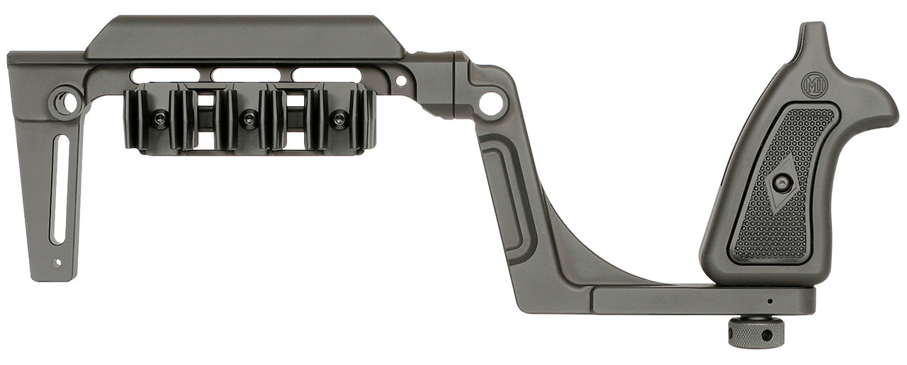 The Bounty Hunter Series is a groundbreaking patent pending new system that introduces an entirely new approach to how revolvers can be configured and experienced. Designed to provide additional points of contact increased stability enhanced comfort and simplified takedown for storage and transport it reimagines the revolver as a more adaptable and customizable platform. – Compatibility Only for use with Ruger® GP100 Revolvers – Specifications – Available as a stock or arm brace designed for enhanced stability and control across small and large revolver calibers – Constructed from Hard Coat Anodized 6061 Aluminum for the grip stock and Z-beam ensuring durability and lightweight performance – Features polymer textured grip panels a polymer cheek piece and a rubber butt pad for superior comfort and recoil management on the stock version – Properly aligned height for seamless use with iron sights and red dot mounts – Multiple points of contact improve shooting accuracy and control – Ambidextrous design for right or left-handed shooters – Includes a shell plate holder with 3 Midwest Industries Universal Shell Holders compatible with any revolver caliber and allowing 6 rounds of ammunition to be stored – Hardened steel takedown thumbscrew enables easy disassembly for compact storage – Equipped with 5 quick-detach sling sockets for customizable sling configurations – Designed with sufficient room for easy firearm handling and operation – Patent-pending Design – Made in the USA – Lifetime Warranty – Weight: 1.75lbs
