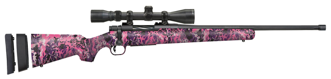 The Mossberg Patriot Super Bantam boasts all the features youll find in our full-sized Patriot but with features to fit smaller statured users. Plus the Super Bantam stock design includes a removable 1 spacer to allow for customizing length of pull. – Variable length of pull (12-13) with 1 accessory spacer enhances control and comfort in smaller-stature and growing shooters – Threaded Barrel – Standard Patriot features include drop box magazine recessed match barrel crown fluted barrels spiral fluted bolt patented LBA® user adjustable trigger (2-7 lbs) and streamlined bolt handle – Specifications – Caliber 350 LEGEND – Action Type Bolt-Action – Usage Hunting / Sporting Bantam – Barrel Type Fluted Threaded – Barrel Length 20 – Barrel Finish Matte Blue – Capacity 4+1 – Length 40.5 – LOP 12-13 – LOP Type Adjustable – Scope 3-9x40mm – Sights Weaver Style Bases – Stock Synthetic (Muddy Girl Wild) – Twist 1:16 – Weight 7.5