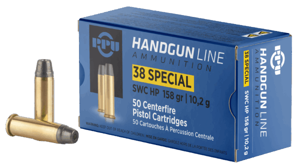 PPU .38 SPECIAL SWC HP 158G 50RD BOX 10 BOXES PER CASE