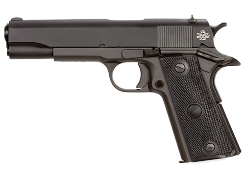 The M 1911 GI standard is a great representation of the original US GI combat issue 1911. It’s chambered in 9mm and built with our exacting engineering standards. Fixed low profile sights and traditional smooth slim design are perfect for quick pull holster use. A durable parkerized finish gives it a tough smooth non-reflective surface. The 5 barrel offers a balanced weight to assist with the accuracy and recoil that made the original 1911 design famous. True to all Rock Island 1911s the GI Standard comes with a crisp factory 4- to 6-pound trigger to make it a great experience right out of the box. – Caliber: 9mm – Capacity: 9 Rounds – Sights: Front: Fixed Rear: Fixed – Weight: Unloaded: 2.82 lbs / 1.28 kg Loaded: 3.25 lbs / 1.47 kg – Length: 8.56 inch – Height: 5.5 inch / 139.7 mm – Frame: Parkerized – Slide: Parkerized – Barrel Length: 5 inch / 127 mm – Grooves: 6 Grooves – Trigger Pull: 4-6 lbs / 181-2.72 kg – Length of Twist: 1 in 16 inch