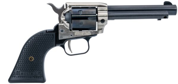 Heritage, MFG# RR22B4NI, UPC: 727962710074, UOM: EA, Rough Rider, .22LR, 4.75″ Barrel, Fixed Sights, Nickel, Black, Star Grips, 6-rd, HERI, HERIHG20, HERIHGALL, HG20, HGALL