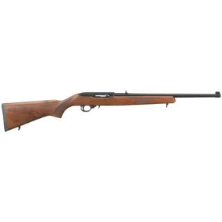 Caliber: 22 LR – Stock: American Walnut – Front Sight: Gold Bead – Rear Sight: Adjustable – Material: Alloy Steel – Twist: 1:16 RH – Capacity: 10 – Finish: Satin Black – Weight: 5.2 lb. – Overall Length: 37 – Barrel Length: 18.50 – Grooves: 6 – Patented detachable 10-round rotary magazine features a unique rotor to separate cartridges and provide reliable feeding. – Legendary action a tried and true Ruger design ensures consistent reliable performance. – Easy-to-use extended magazine release provides smooth no-fuss removal of flush-mounted magazine. – Positive push-button cross-bolt manual safety. – Combination scope base adapter for both Weaver-style and .22 tip-off scope mounts included. – Cold hammer-forged barrel is locked into the receiver by a unique two-screw V-block system. – Heat-stabilized glass-filled polymer trigger housing assembly is precision made of high-tech material for improved manufacturing tolerances impact and abrasion-resistance and an unmatched ability to withstand the elements. – Sling swivels and flat buttplate with rubber buttpad.