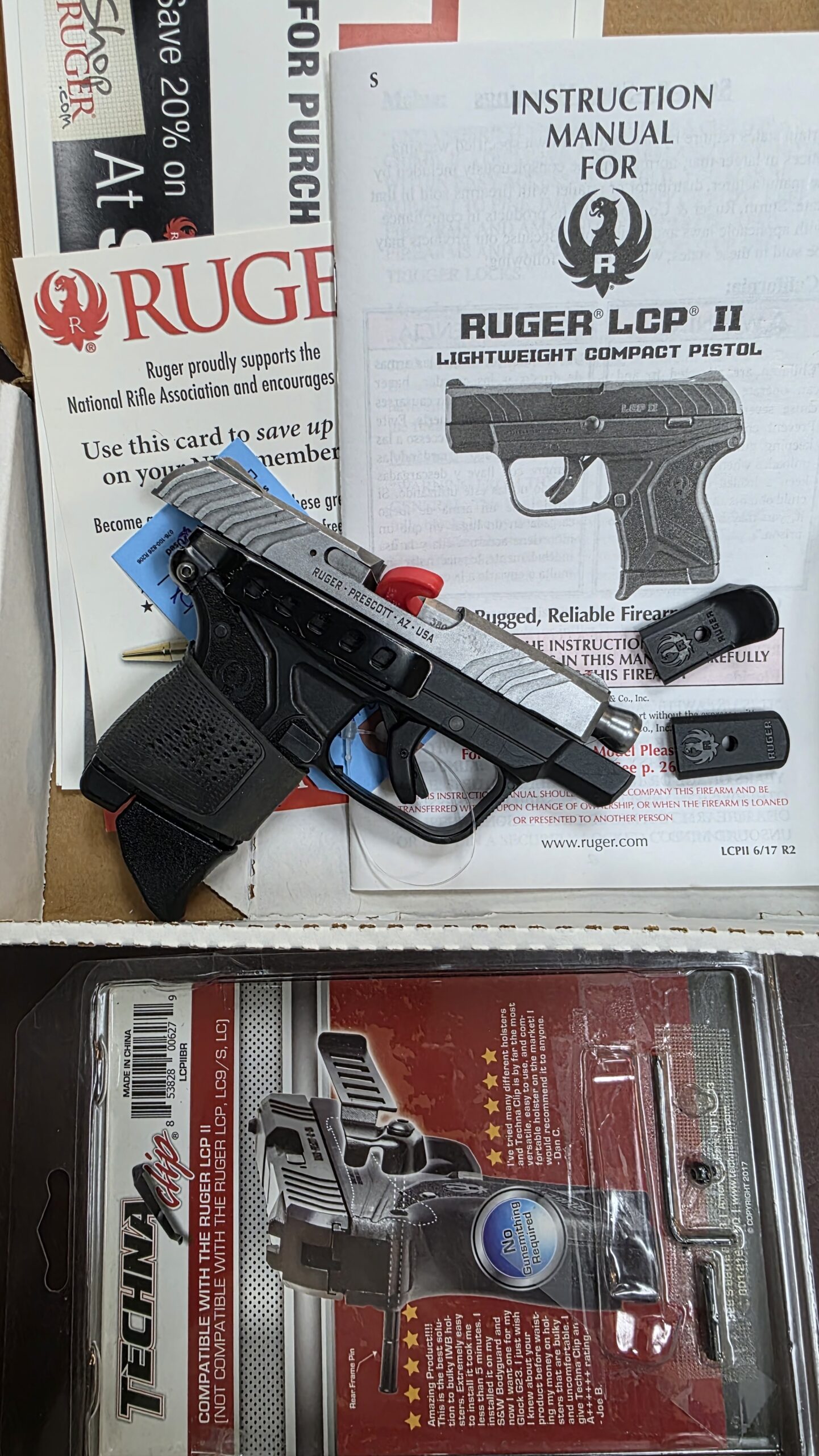 Ruger LCP II SS 380 Used LNIB original box. belt clip. finger extension.