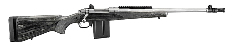 Ruger, MFG# 6822, UPC: 736676068227, UOM: EA, Gunsite Scout, 308 Win, 18.7″ Adj Sights, Stainless/Black Laminate, w/Rings, 10-rd, RUGE, RUGELG07, RUGELGALL, LG07, LGALL