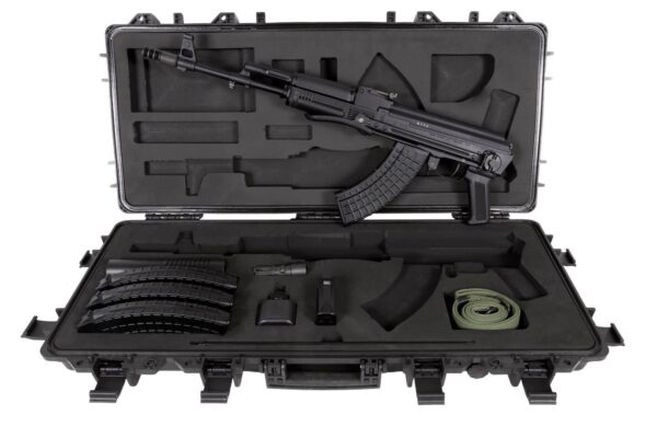 Purpose-built for the Arsenal SAM7UF this compact tactical rifle case is engineered to outperform. The high-impact shell IP67-rated seal and pressure valve protect against dust impact and full water submersion. Inside 3D contoured CNC precision-machined dual-layer foam in the lid and base suspends the rifle with cutouts for magazines ammunition and gear. Metal-reinforced mil-spec QD points allow confident carry through rain rivers and rough terrain. For mass movement the case’s stackable geometry per military requirements lets multiple units secure for transport by truck or cargo aircraft. This is the hard gun case built for warriors and guaranteed for life. Read more about the SAM7UF Eternity Case.