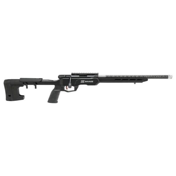Accuracy performance and balance. Three ingredients for the perfect rimfire rifle to ring steel at challenging distances. The bolt action B-Series Precision Lite models are feature rich with performance upgrades to create a perfectly balanced rifle for target shooting. These rifles feature an exclusive Modular Driven Technologies (MDT) one-piece aluminum chassis with an adjustable cheek riser and length-of-pull spacers for the perfect fit. The already accurate Savage precision button rifled barrel is upgraded with a carbon fiber wrap for optimum balance and heat dissipation. The carbon fiber heavy barrel profile and aluminum stock allow for a perfectly center-balanced rimfire rifle. Paired with the user-adjustable AccuTrigger this rifle is ready to compete right out of the box.