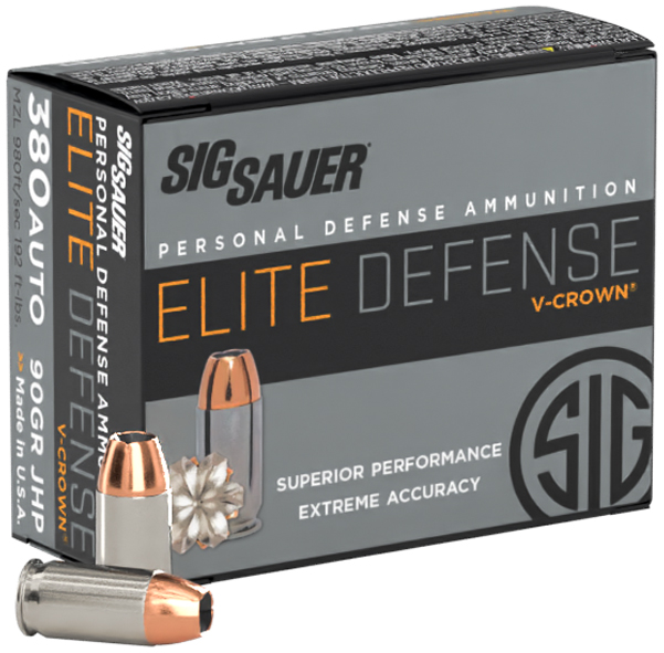 Sig’s revolutionary V-Crown jacketed hollow point centerfire ammunition engineered for reduced recoil and optimal performance in short barrel concealed carry pistols. – Caliber: 380 Automatic Colt Pistol – Bullet Type: Jacketed Hollow Point – Bullet Weight: 90 gr – Muzzle Energy: 192 ft / lbs – Muzzle Velocity: 980 fps – Rounds Per Box: 20