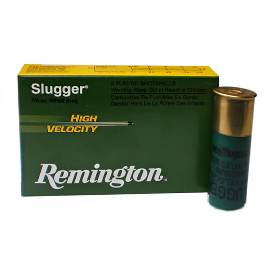 Remington’s high-velocity Foster-style lead slug exits the barrel at 1800 fps which is 13 percent faster than standard 1 oz. slugs. The .875 oz. Slugger High Velocity delivers 200 ft-lbs more energy at 50 yards with flatter trajectory. This slug is designed for the avid deer hunter using smooth bore guns. – Gauge: 12 Gauge – Length: 3 – Weight: 7/8 oz – Shot Size: Slug – Muzzle Velocity: 1875 fps – Rounds Per Box: 5