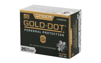 Gold Dot was the first handgun ammunition loaded with true, bonded-core bullets. Using an exclusive Uni-Cor method, Speer bonds the jacket to the core one molecule at a time at the very beginning of the bullet construction process. This virtually eliminates core-jacket separation. With options for both standard handguns and short barrels, there’s a Gold Dot load to fit any shooter. Each Gold Dot hollow point cavity is tuned by specific caliber and bullet weight to ensure optimum performance. Speer forms the hollow point cavity in two stages. The first establishes how far the bullet can expand; the second controls the rate of expansion. This patented two-step cavity formation gives Speer engineers incredible control in the design process. Each bullet caliber and weight is tuned for optimum expansion and penetration. The bullet is then finished to provide a smooth profile for reliable feeding in semi-automatic handguns. To ensure Gold Dot performs when you need it most, they first make sure it excels in the stringent tests developed by the Federal Bureau of Investigation for service-class handgun cartridges. These protocol tests evaluate penetration, expansion and retained weight in bare gelatin and gelatin shielded by common barriers.