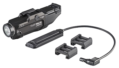 The low-profile TLR RM 2 LASER-G features independently operating push-button and remote pressure switches to provide the security of knowing you’ll always have light. Packaged as a kit offering everything you need to mount to your long gun. – White LED illuminator and integrated 510-530nm green laser – 1000 lumens; 200m beam; runs 1.5 hours (LED only or LED/laser); runs 11 hours (laser only); runs 3 hours on strobe – Mode selector toggle switch for laser only light only or light/laser combo – Features independently operating push-button switch or remote pressure switch – Remote pressure switch exits at 90° providing improved wire routing option while preserving rail space – Safe off feature prevents accidental activation; saves batteries – Engineered optic produces a concentrated beam with optimum peripheral illumination – Securely attaches to long guns with MIL Standard 1913 rails – Packaged as a kit offering everything you need to mount to your long gun – Powered by two CR123A lithium batteries (included) – IPX4 water-resistant – 4.60 in. (11.68 cm); 4.95 oz (140.3g)
