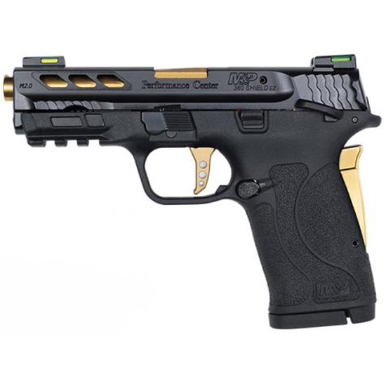 The reality of protection is that you never know when you’ll need it. We took the power and features of our full sized M&P pistols and put them into a slim lightweight pistol the size of your hand. The M&P SHIELD is an easy to conceal pistol that offers professional grade features with simple operation and reliable performance day or night. The Performance Center SHIELD offers discerning shooters premium features including a factory ported barrel and slide. One million Shield owners can’t be wrong. – Features – Ported barrel to reduce muzzle flip – Lightening cuts in slide for reduced weight – PC flat face gold colored anodized aluminum trigger – PC enhanced gold colored anodized aluminum grip safety – PC ported Titanium coated gold finish barrel – Easy to rack slide – Performance Center action crisp lightweight trigger with tactile and audible trigger reset – HI-VIZ Litewave H3 Tritium/Litepipe Sights – Tactile loaded chamber indicator (TLCI) – see and feel if there is a round in the chamber – Picatinny-style rail – Two easy-to-load 8-round magazines – Model: Performance Center M&P 380 SHIELD EZ M2.0 Gold Ported Barrel – Caliber: 380 Auto – Capacity: 8+1 – Barrel Length: 3.8 / 9.7 cm – Overall Length: 6.9 – Front Sight: HI-VIZ Litewave H3 Tritium/Litepipe Sights – Rear Sight: HI-VIZ Litewave H3 Tritium/Litepipe Sights – Action: Internal Hammer Fired – Weight: 18.5 oz / 524.5g – Barrel Material: Stainless Steel – Slide Material: Stainless Steel – Frame Material: Polymer – Slide Finish: Armornite – Frame Finish: Matte Black