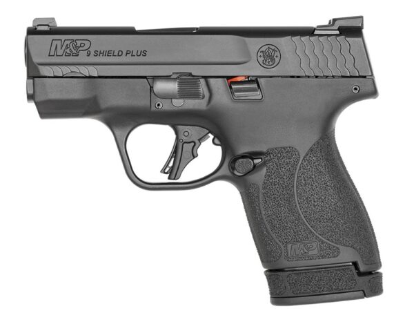 Brand: Smith & Wesson Model: M&P9 Shield Plus w/ Night Sights Type: Pistol – Semi Auto Caliber: 9MM Finish: Matte Black Polymer Slide Material: Stainless Steel with Armornite Finish Action: Striker Fired Frame: Micro-Compact Grips: Poly Sight: Front & Rear Tritium Night Sights Barrel Length: 3.1″ Rifling: 1:10″-5 RH Threaded Barrel: n/a Overall Length: 6.1″ Weight: 20.2 oz Capacity: 13+1 and 10+1 # of Mags: 2 Safety: No Thumb Safety Features: Flat Face Trigger, Enhanced Grip Texture, 18-Degree Grip Angle