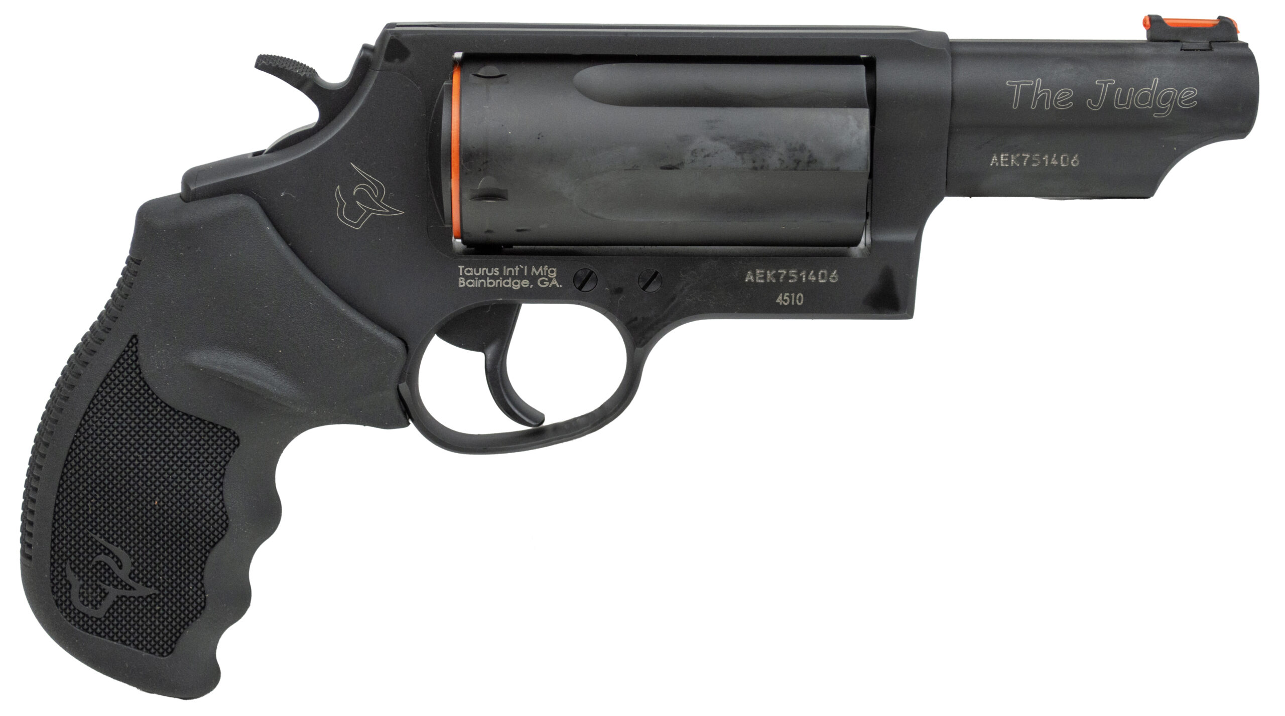 More than a decade since it was first introduced the legendary Taurus Judge® still rules. Today it’s available in more than a dozen models. Capable of chambering both 45 Colt and 2.5 inch 410 shotshells it’s the original five-shot game changer. Now the legendary Judge is optics ready joining the Taurus Optics Ready Option lineup of revolvers. – The Basics – Caliber 45 COLT/410 BORE 2.5 IN – Capacity 5 Rounds – Front Sight Fiber Optic – Rear Sight Fixed – Action Type DA/SA – Special Features Taurus Optic Ready Option T.O.R.O. – Tech Specs – Frame Size Compact – Barrel Length 3.00 In. – Overall Length 9.50 In. – Overall Height 5.10 In. – Overall Width 1.50 In. – Overall Weight 29.00 Oz. (Unloaded) – Twist Rate 1:12 in RH twist – Grooves 6 – Materials – Frame Material Alloy Steel – Frame Finish Matte Black Oxide – Cylinder Material Alloy Steel – Cylinder Finish Matte Black Oxide – Barrel Material Alloy Steel – Barrel Finish Matte Black Oxide – Safety Transfer Bar