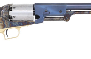 Action: Single – Caliber: .44 Black Powder – Capacity: 6 – Finish: Blued/Brass – Grip: Walnut – Sights: Top Strap/Post – Barrel Length: 8 – Overall Length: 14.5 – Weight: 2.75 lb