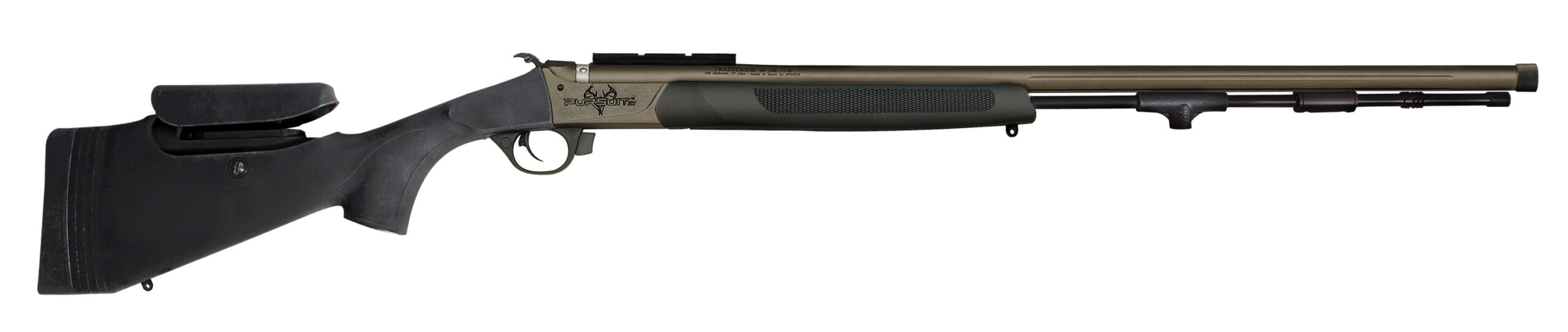 Traditions® Pro Series offers hunters and shooters all the bells and whistles they would be looking for in a firearm. This series provides the most full-featured options Traditions® has offered. The Pro Series is set apart by 3 distinct features. The adjustable length of pull provides spacers that can be added or removed and the adjustable cheekpiece can be lowered or raised by simply turning a screw in the side of the stock. With the adjustments able to be made this allows for a more comfortable shooting experience. The threaded barrel allows for the option to add a muzzle brake and reduce recoil and for better control. The Pro Series has everything you could want in a firearm! – The Pursuit XT Pro Series takes the popular Pursuit line to the next level! The Pursuit XT is outfitted with a 26 Chromoly steel barrel. Chromoly steel has long been recognized as the best barrel material for strength and accuracy so it allows this muzzleloader to be both lightweight and accurate. The Pursuit XT also has a VAPR Twist barrel with a 1:24 twist. This faster twist will help to stabilize bullets increase accuracy and expand the range of bullet options that can be shot out of this muzzleloader. We highly recommend trying the Smackdown® Carnivore 250 grain bullet in this muzzleloader! – The Pursuit XT is equipped with the Elite XT Trigger system. This upgraded trigger features a precise and accurate trigger pull along with a rebounding hammer and manual cross block trigger safety. – This muzzleloader comes with the Quick-T Ramrod Handle. It functions like a palm save and t-handle all in one making it easier and more comfortable to load your rifle. The Quick-T Ramrod Handle has a t-shaped piece with brass jag that can screw in allowing your ramrod to function like a work or cleaning rod. The Quick-T Ramrod Handle sits on your ramrod when it is in the storage position on your rifle. – PURSUIT XT PRO SERIES FEATURES: – ADJUSTABLE CHEEKPIECE – ADJUSTABLE LENGTH OF PULL – THREADED BARREL – 209 SHOTGUN PRIMER IGNITION – 26 ULTRALIGHT CHROMOLY TAPERED FLUTED BARREL – VAPR 1:24 TWIST – PREMIUM CERAKOTE FINISH ON THE OUTSIDE OF THE BARREL – ELITE XT TRIGGER SYSTEM – WEIGHS 7.1 LBS – WIDER FOREND FOR BETTER GRIP AND HAND POSITION – ACCELERATOR BREECH PLUG – WORKS FOR BOTH LOOSE AND PELLETIZED POWDER – LT-1 ALLOY FRAME – DUAL SAFETY SYSTEM – INTERNAL HAMMER BLOCK SAFETY AND TRIGGER BLOCK SAFETY – SPEED LOAD SYSTEM – FOR EASY LOADING AND MORE CONSISTENT GROUPS – QUICK-T RAMROD HANDLE – Quick Relief Recoil Pad – Lightweight and maneuverable – Fast action release button – Extended ambidextrous hammer extension – Drilled and tapped for a scope – Sling swivel studs – Solid aluminum ramrod