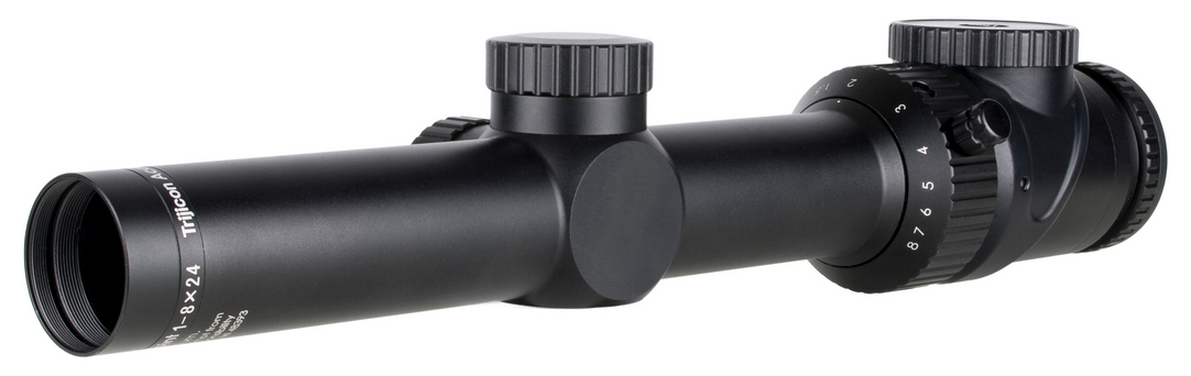 The Trijicon AccuPoint® 1-8×24 riflescope is a favorite among hunters offering true 1x magnification with the flexibility to reach out to 8x for longer range engagements. A battery-free illuminated reticle powered by tritium and fiber optics allows for fast target acquisition even in low light. – Length x Width x Height 11 in x 2.3 in x 2.3 in (279.4mm x 58.42mm x 58.42mm) – Weight 19.4 oz. (549.98g) – Magnification 1-8x – Objective Size 24mm – Tube Size 30mm – Reticle Pattern Triangle Post – Day Reticle Color Red – Night Reticle Color Red – Focal Plane Second – Illumination Source Fiber Optics & Tritium – Power Source Fiber Optics & Tritium – Adjustment 0.25 MOA per click – Adjustment Range 100 MOA Total Travel – Eye Relief 3.3 in.-4.1 in. (83.82mm-104.14mm) – Exit Pupil 9.2 in.-3.0 in. (233.68mm-76.2mm) – Field of View (degrees) 20.0°-2.5° – Housing Material 6061-T6 Aluminum black hard coat anodized – Finish Satin Black – Submersion Depth 10 ft. (3m) – INCLUDES – Trijicon Logo Sticker (PR15) – LENSPEN® (TA56) – Set of Lenscaps – Manual – Warranty Card
