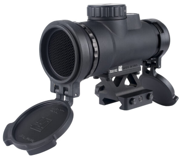 The Trijicon MRO (Miniature Rifle Optic) SD is a sealed miniature reflex sight intended for use on rifles carbines and shotguns to provide fast target acquisition. The large aperture and tapered light path maximize the viewing area and allow for better situational awareness and fast target engagement. Combine all this with the ambidextrous brightness controls sub-flush adjusters advanced lens coatings and the fully sealed waterproof hard anodized forged 7075-T6 housing and you have the ultimate mini reflex sight on the market. – The MRO SD features a re-engineered objective lens allowing for enhanced optical performance and magnifier compatibility. The MRO SD is also equipped with improved windage and elevation adjusters designed to maintain stricter zero retention requirements under drop and recoil. – The MRO SD Patrol comes equipped with lens covers for both the ocular and objective lenses along with an Anti-Reflection Device KILLFLASH® that protects you from unwanted detection or in bright conditions while eliminating glare. – INCLUDES – Ocular Cap – Objective Cap ARD – 1/3 Co-Witness Quick Release Mount (AC32071) – Trijicon Logo Sticker (PR15) – Lens Cloth – Manual – Warranty Card – MRO Mount Guide – Length x Width x Height 4.35 in x 1.7 in x 2.0 in (110.49mm x 43.18mm x 50.8mm) – Weight 5.0 oz. (141.75g) – Magnification 1x – Objective Size 25mm – Reticle Pattern 2.0 MOA Dot – Day Reticle Color Red – Night Reticle Color Red – Bindon Aiming Concept (BAC) No – Illumination Source LED – Illumination Settings 8 – Power Source 1 CR2032 Lithium Battery – Battery Life 2.5 years of continuous use at day setting 3 (setting 5 of 8) at °F (21°C) – Adjustment 1/2 MOA Per Click – Adjustment Range 70 MOA Total Travel – Eye Relief Infinite in. – Mount 1/3 Co-Witness Quick Release Mount – Housing Material 7075-T6 forged aluminum – Finish Matte Black – Submersion Depth 100 ft. (30m)